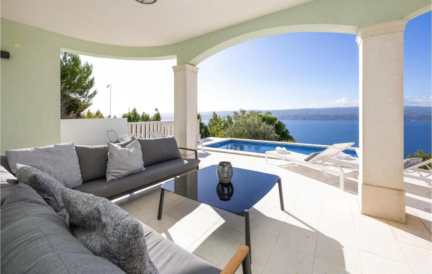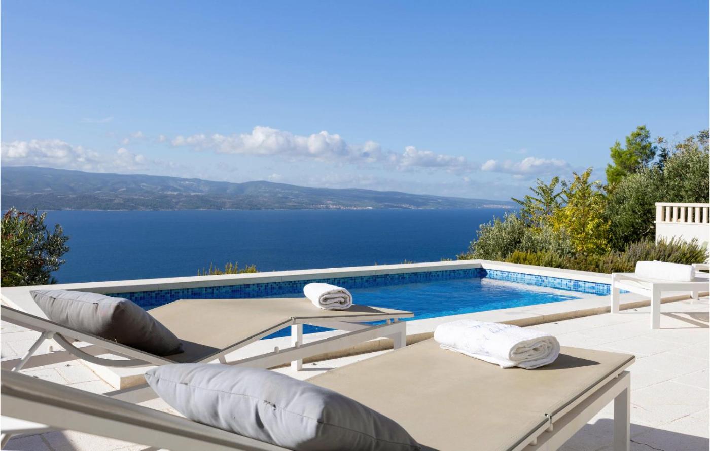 Four-Bedroom Holiday Home. This holiday homes standout features are the private pool and fireplace. Featuring a private entrance, this spacious holiday home also consists of 1 living room, 4 separate bedrooms and 3 bathrooms with a shower. Guests will find a stovetop, a refrigerator, a dishwasher and kitchenware in the fully equipped kitchen. The holiday home also offers a barbecue. The air-conditioned holiday home provides a TV, a washing machine, a tea and coffee maker, a dining area as well as sea views. The unit offers 3 beds and 1 futon.